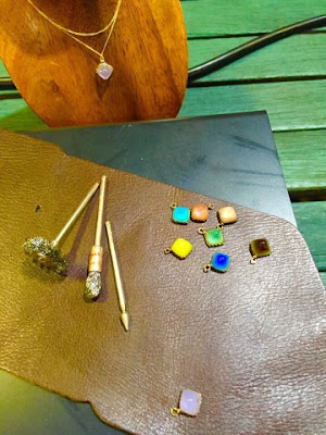 着用アクセサリーは、ピンクのピラミッドペンダント18kバージョン